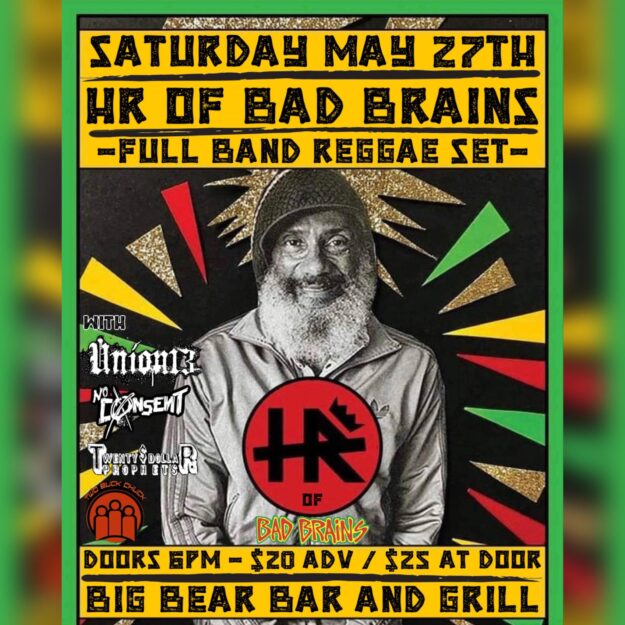 Doors open @ 6pm May 27th Bands include: HR of Bad Brains Union13 No Consent Twenty Dollar Prophets Two Buck Chuck