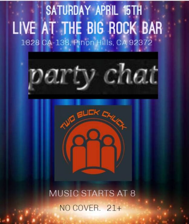 April 15th, playing around 7pm, No Cover See you there! Bands include: Two Buck Chuck Party Chat